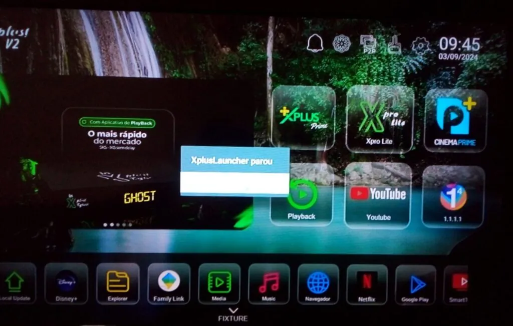 Se sua box estiver apresentando um erro no launcher, como mostrado na imagem acima, informamos que uma nova atualização foi lançada. Ela será aplicada automaticamente, sem que você precise fazer nada. Basta aguardar a conclusão do processo.